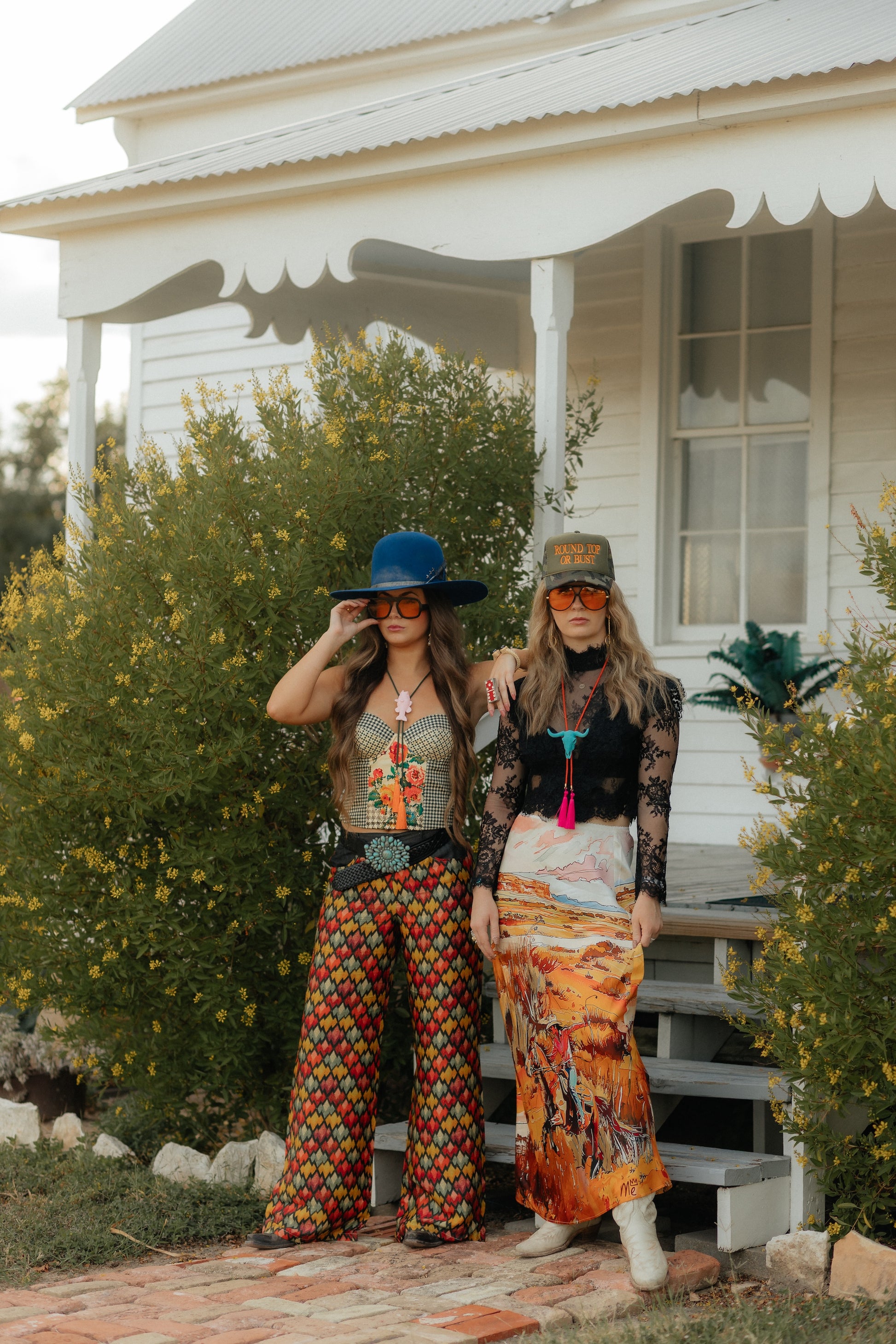 Elevate your wardrobe with the Sandra Combined Denim Pants, where chic meets comfort. Featuring a black denim top paired with multicolored Aztec print legs crafted from a silky viscose blend, these flowy pants bring vibrant style and effortless movement to your look. True to size and perfect for making a bold statement wherever you go.